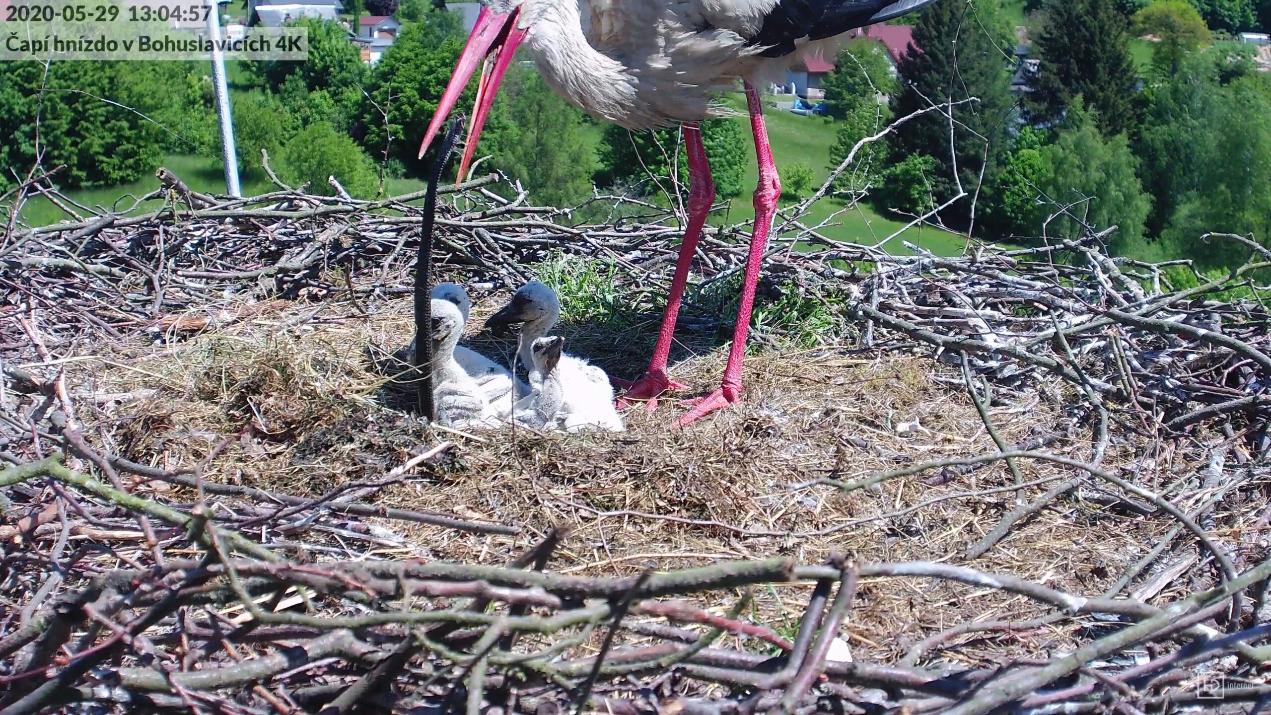 Nakonec jsem se dočkali. Pokud někdo doposud nevěřil, že se v dubnu opravdu vrátil Bohouš, dnes dostal konečný důkaz. Bohouš totiž vyrovnal své loňské lovecké skóre a opět dovlekl do hnízda zmiji. Krátce po poledni ji vyhodil čápatům do jamky spolu s dalším krmením. Pak se zhruba pět minut bavil tím, jak se o ni čápata přetahovala, než jim ji sebral a spolknul.