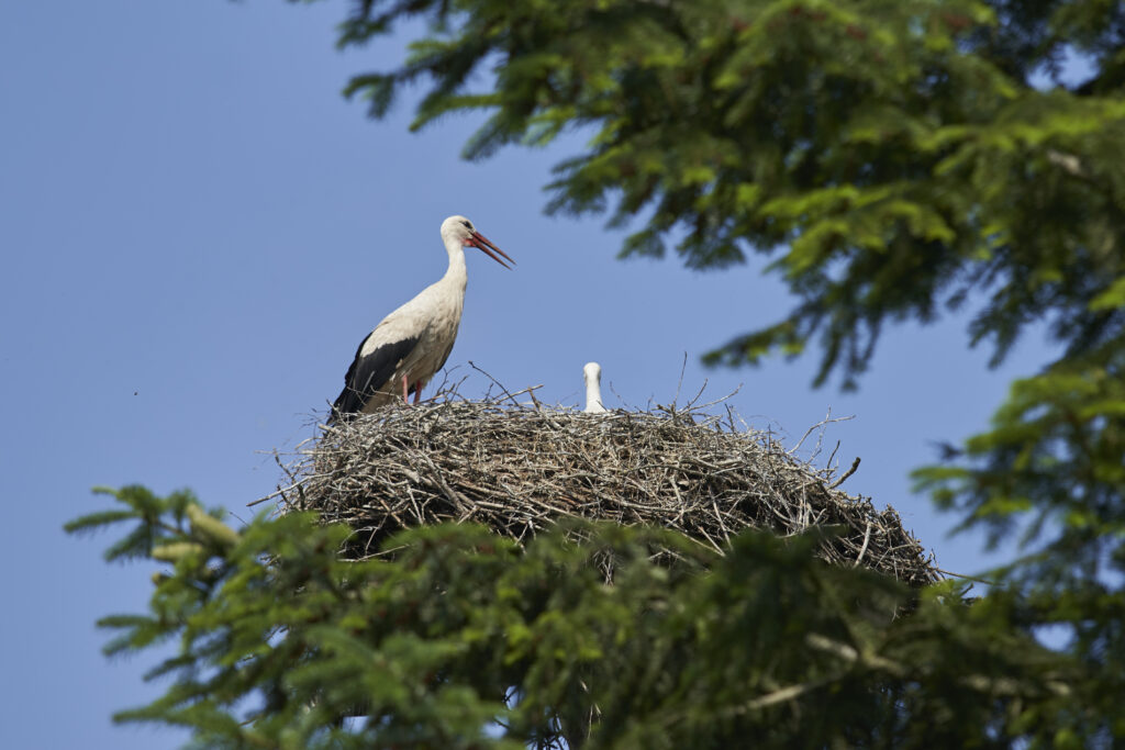 There is a problem that white stork is a protected animal, which shouldn´t be disturbed during nesting season. Only ornitologists are allowed to enter the nest in urgent cases.