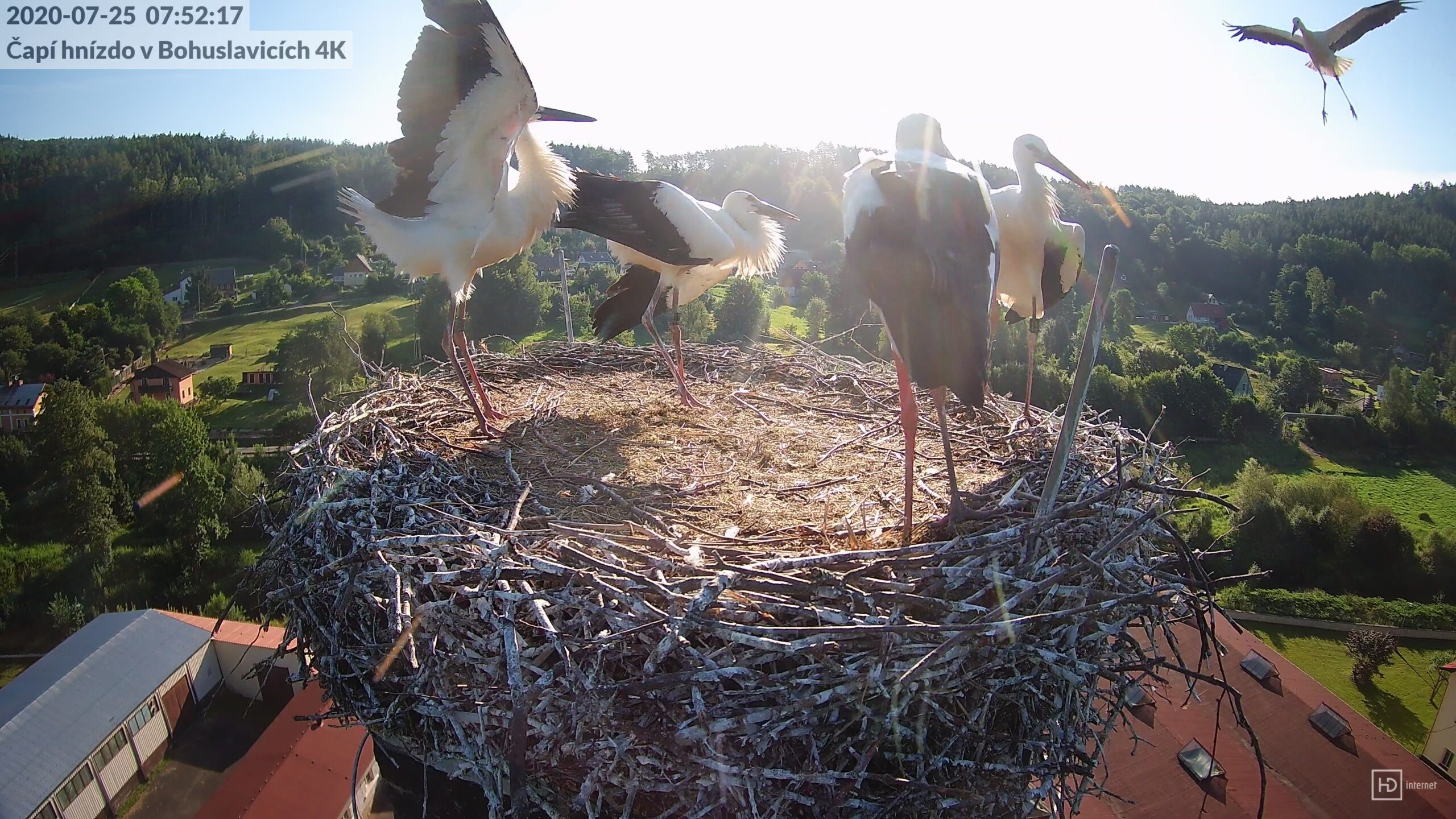Další logickým krokem čapího leteckého výcviku bude mezipřistání na zemi. A také dále čekáme na první let Šárky a Plaváčka, kteří se ale hrdě hlásí ke svým sourozencům.