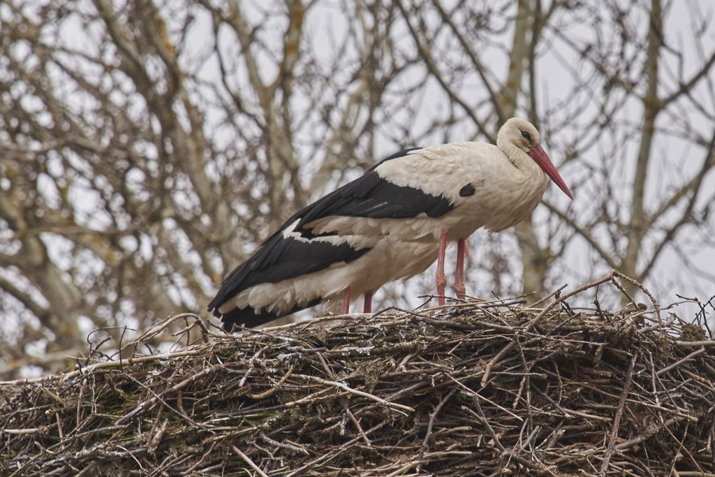 Během rána a dopoledne ještě prosvítalo slunce a bylo vcelku teplo, i přes +10 °C. Bohouš tento čas jako tradičně využil k vylepšování hnízda. Přinesl několik zbrusu nových větví i čerstvou podestýlku. Pozorováním jeho letu jsme zjistili, že “rákosové” listy nenosí od řeky, ale z některé ze zahrad pod horní silnicí.