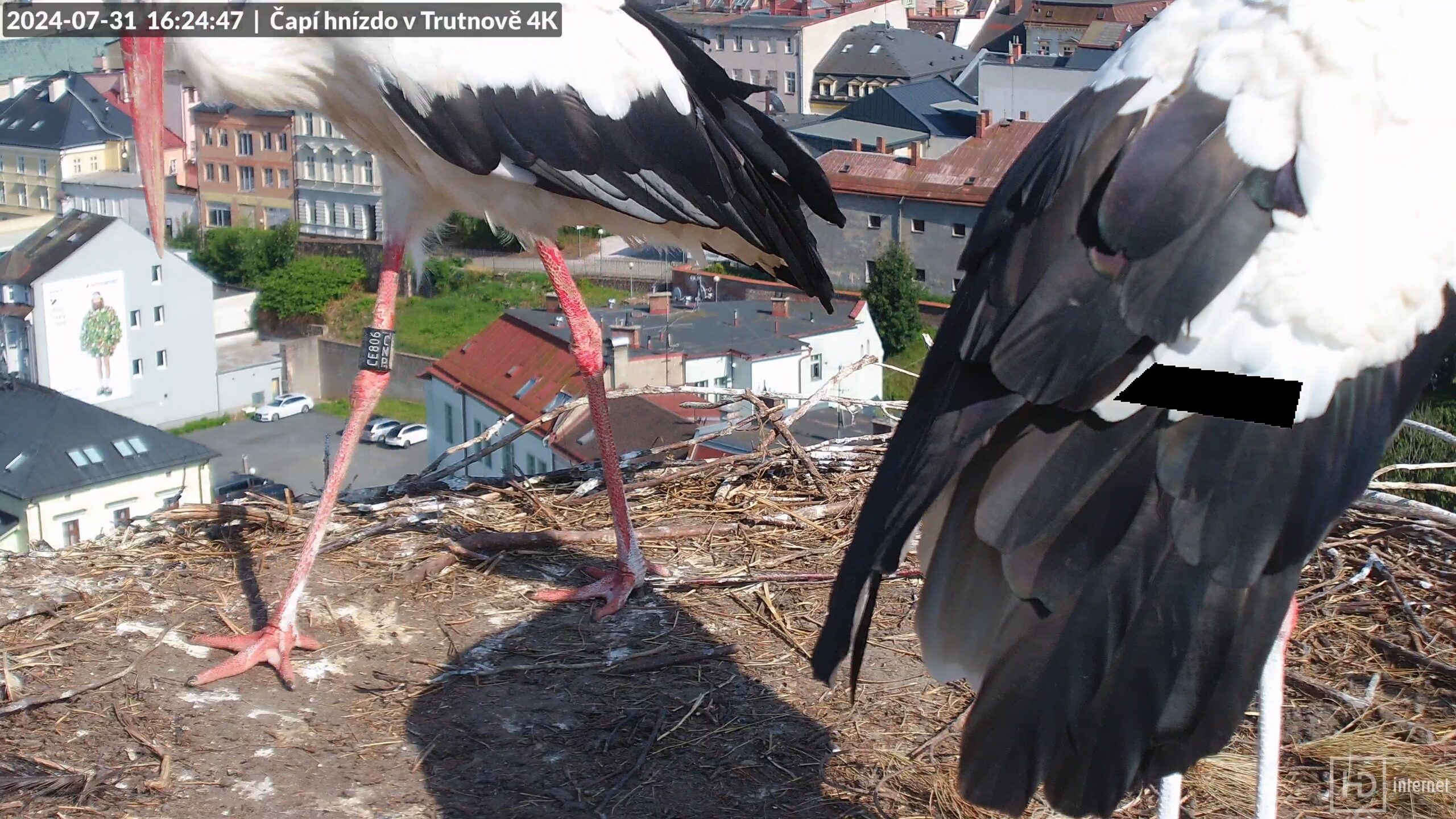 Trutnovská čápata se zrovna někde potulovala, když v 16:15 přistál na jejich prázdném hnízdě cizí čáp. Kroužek neměl, zato vysoké bílé podkolenky ano. Mládež si nejspíš myslela, že někdo z rodičů dorazil se svačinou a hrnula se domů. Cizinec však všechny zahnal, došlo i na krátkou potyčku s Jonatánem přímo na hnízdě. Nakonec přistál na komíně druhý čáp s kroužkem CNP CE806. Jak se ukázalo, jednalo se o čápici Johanku, která letos neúspěšně hnízdila v České Metuji. Vylíhla se v roce 2021 v Otovicích, na stejném hnízdě, které od loňského roku obývá Bohunčin Víťa. Johanka svého průvodce po hodině odehnala a 17:24 sama odlétla pryč. K žádnému dalšímu boji tedy nedošlo. V 18:15 se Johanka znovu vrátila, jenže na hnízdě byla Magda a ta jí už přistát nedovolila.