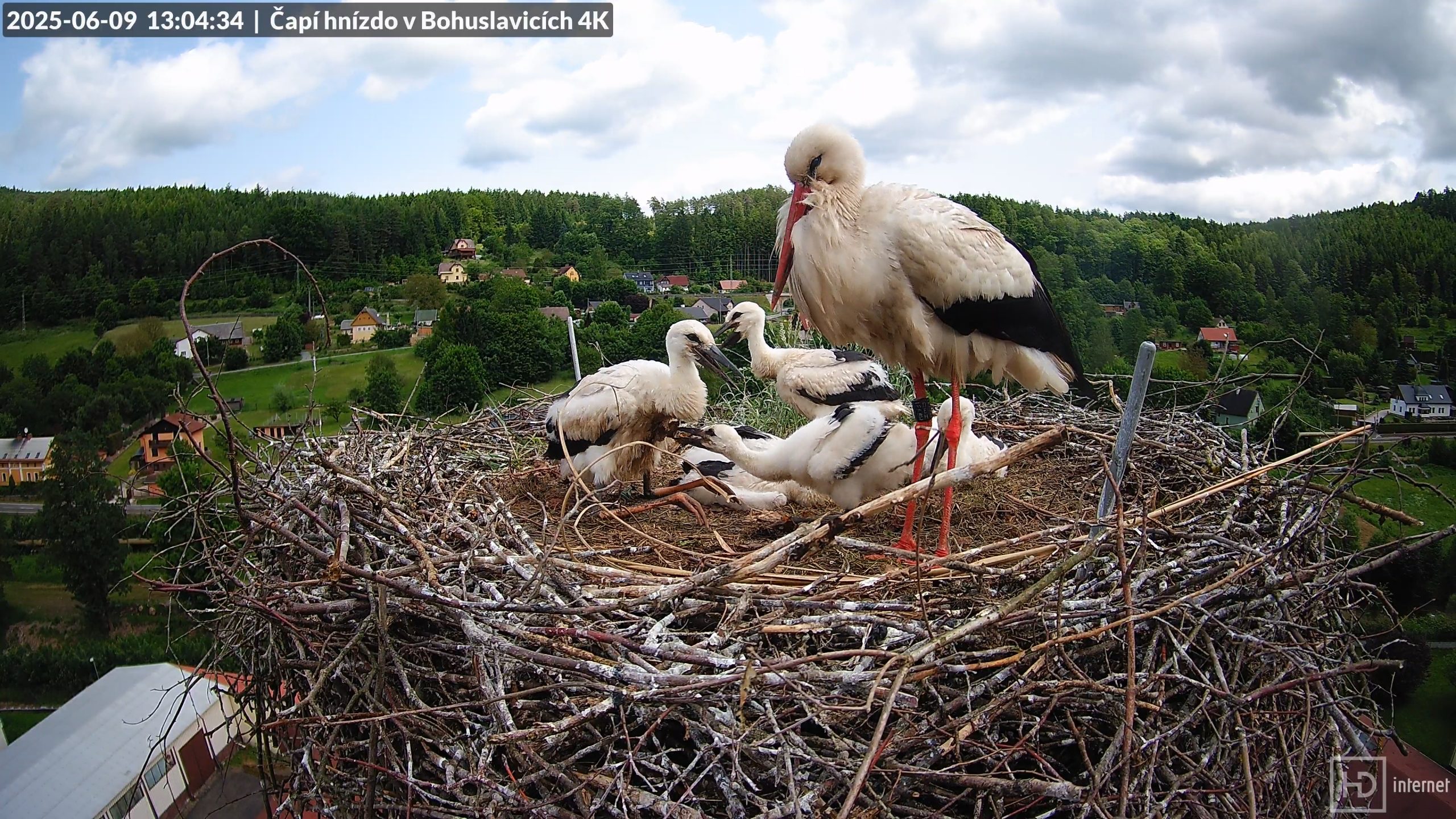 Počasí se konečně začalo zlepšovat, i když déšť se bohuslavickému hnízdu ve večerních hodinách stejně nevyhnul. Přes den však bylo poměrně slunečno, čehož si čápata do sytosti užívala. Bohužel na jiných hnízdech ještě doznívaly následky dlouhodobého vlhka a chladu. Uhynulo jedno ze dvou zbývajících čápat v Kněžmostu a i v Nasavrkách došlo ke ztrátě jednoho ze čtyř již vzrostlejších mláďat. V Libštátu bylo naopak vše v pořádku, Lubošek se povaloval na hnízdě se svými třemi potomky.