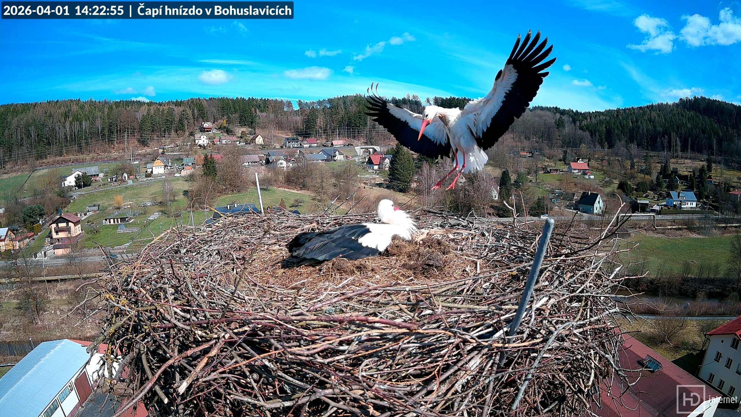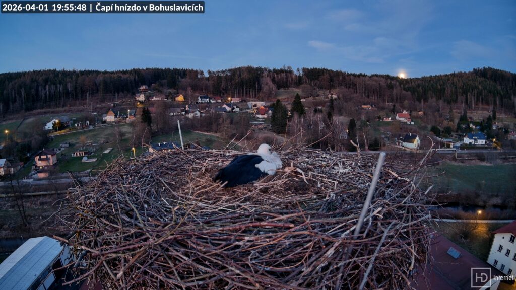Povětrnostní podmínky ve středu Evropy i na Balkáně se konečně začaly zlepšovat, čápi se tak mohli vydat na další cestu. Velké hejno v Bulharsku se dalo do pohybu a jednotliví čápi se dnes začali objevovat i na našem území. Ráno přistál první letošní černobílý návštěvník na komíně ve Chvalči, pokračoval však nejspíš v další cestě, neboť večer se na hnízdo nevrátil. Využil jsem slunečného počasí a vydal se na kontrolu nové hnízdní podložky v naší obci. Krásné hnízdo na bývalém sloupu elektrického vedení tu zbudoval můj bývalý spolužák, za což mu patří velký dík. Třeba se v budoucnu stane domovem některého z našich známých čápů.