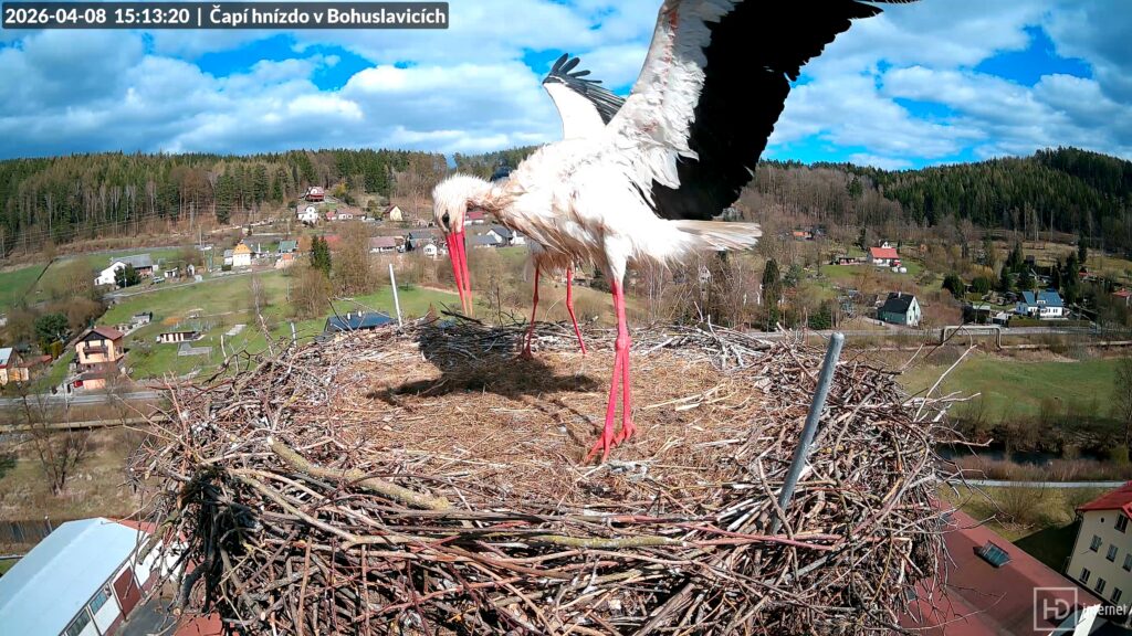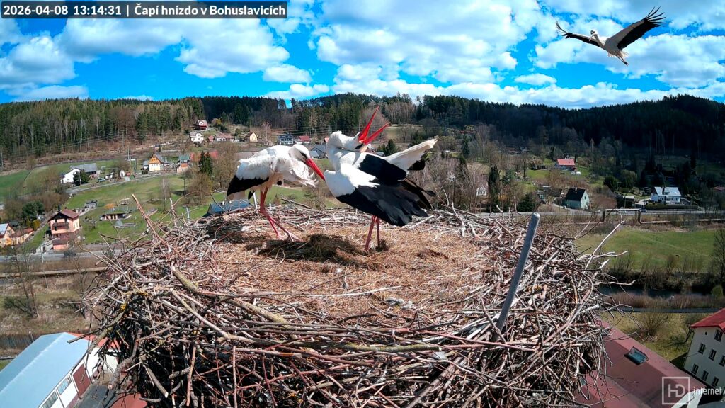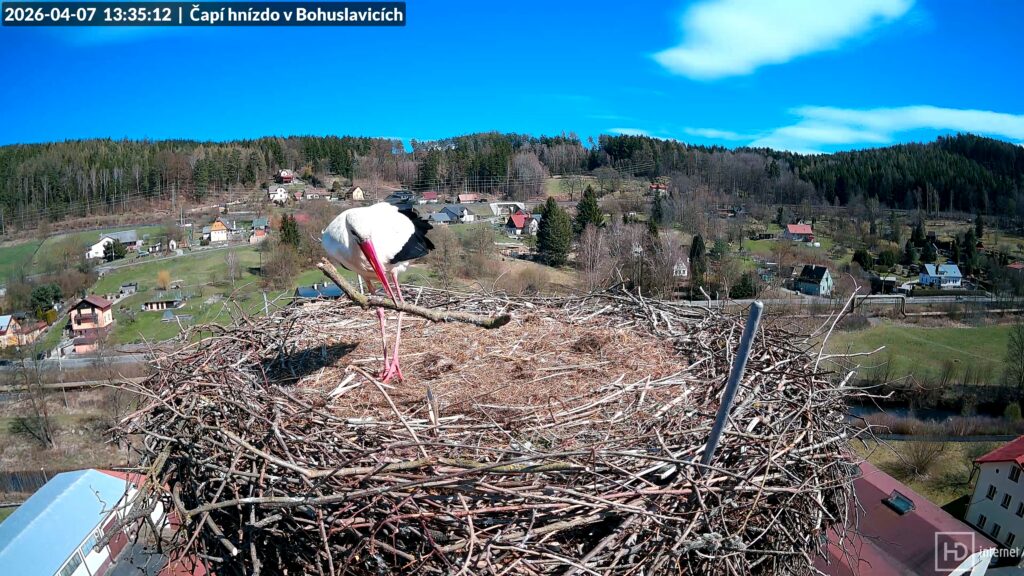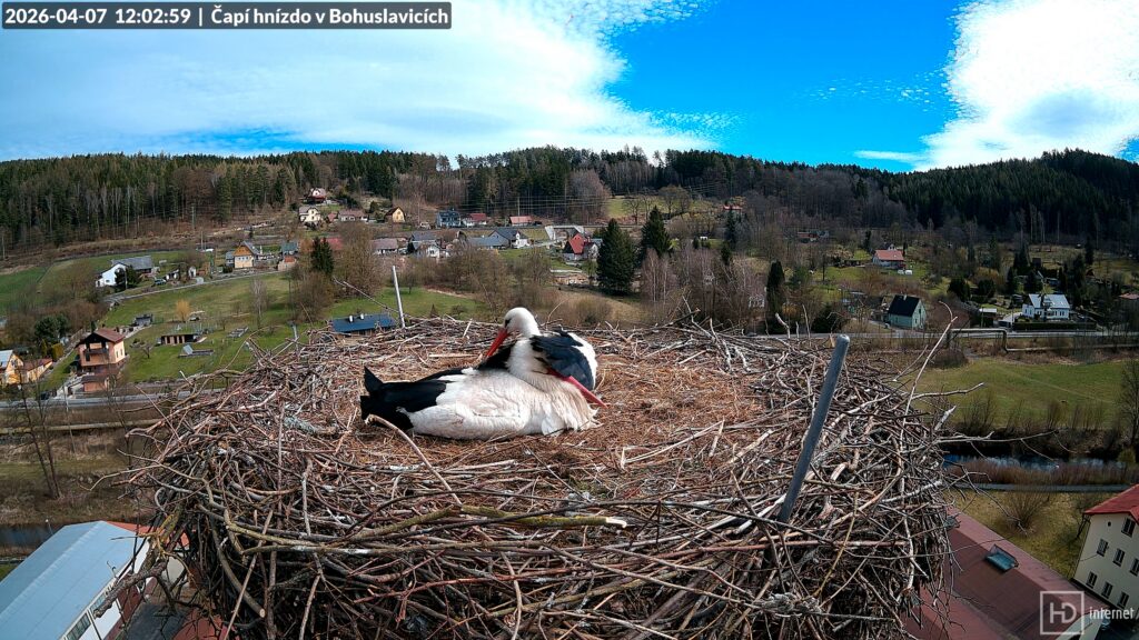 Při čekání na první Bohunčino vajíčko se život na Kafkově komíně pozvolna vrátil do zaběhaných kolejí. Nervozita na hnízdě pominula a stali jsme se svědky tradičního denního chodu čapí domácnosti. Bohdan pilně pracoval na potomstvu a vylepšoval svou pevnost, Bohunka se starala o úklid domácnosti. Oba začali více opouštět hnízdo, Bohunka se častěji a delší dobu věnovala lovu. I když se v okolí občas vyskytnul nějaký narušitel, žádný cizí čáp si nedovolil přistát až na hnízdě. Na bezpečnost svého domova dbali oba čápi. Prvního vajíčka se ostatně můžeme dočkat každým dnem. Dnes se objevili dva čápi v Dobroníně a večer přilétl čáp do Libštátu. Ani v jednom případě však zatím totožnost čápů neznáme.