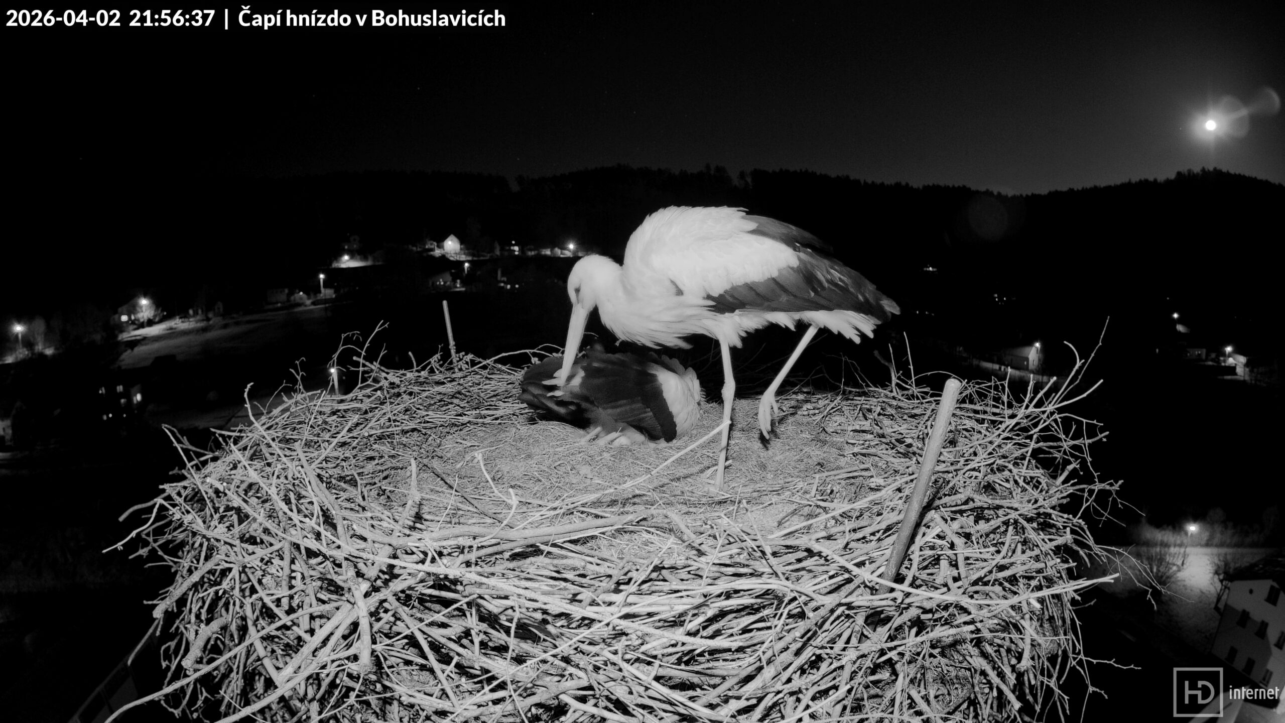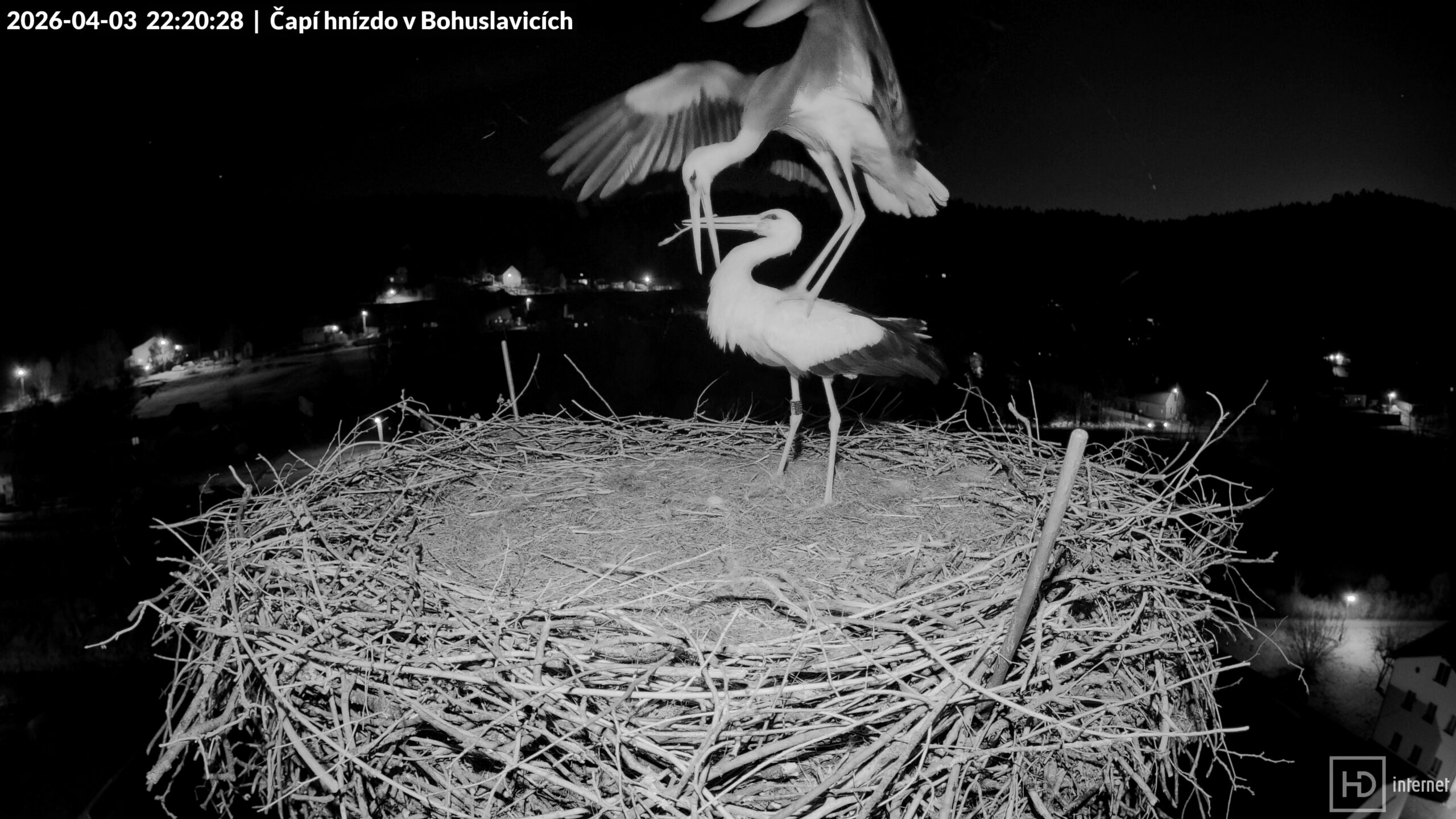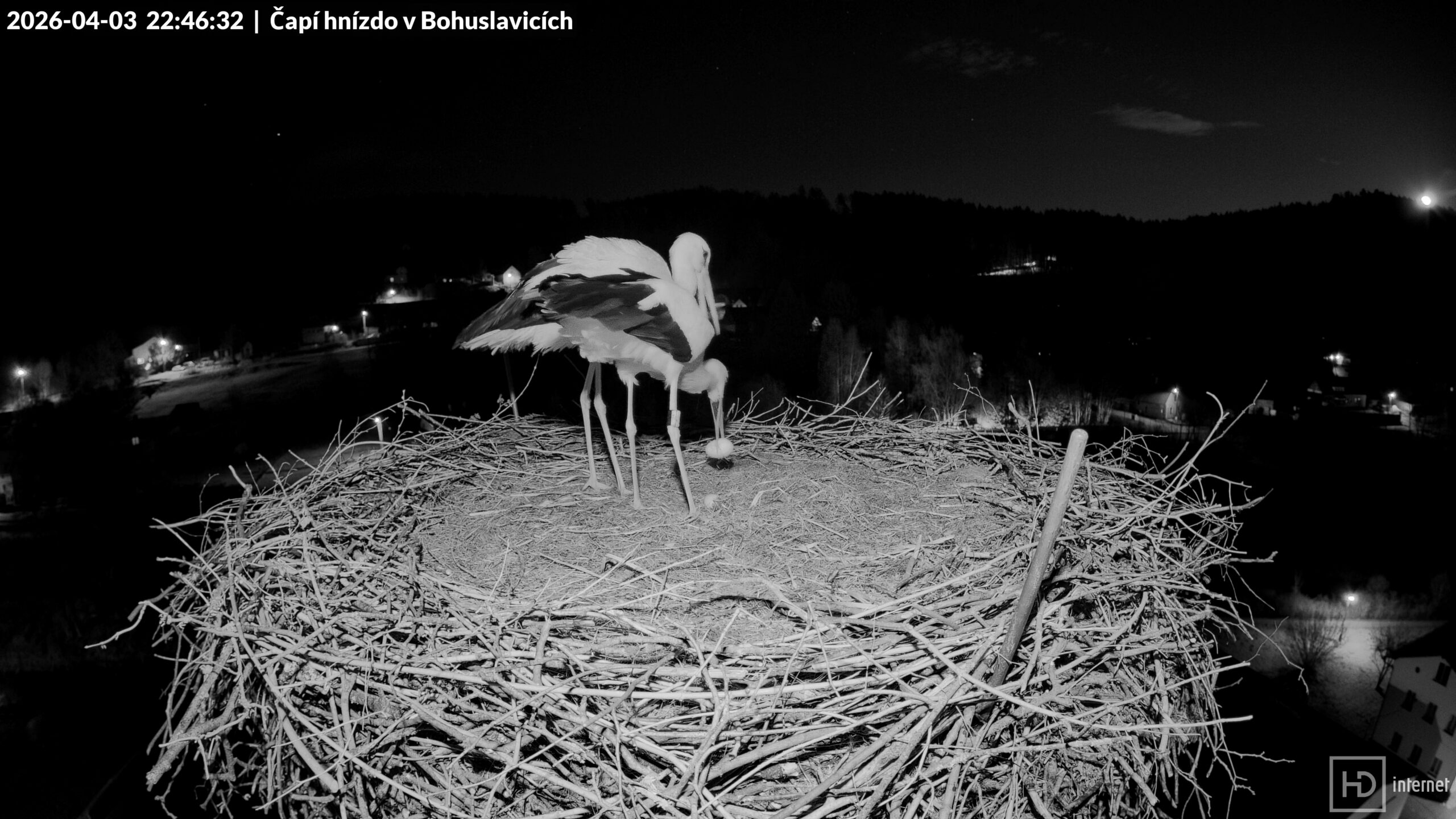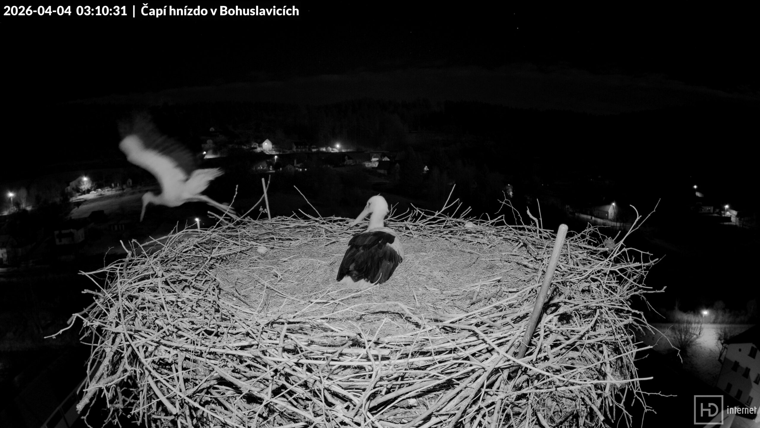 4.4.2026 3:10:31 Bohunka opouští v noci krátce hnízdo (do 3:19:29)